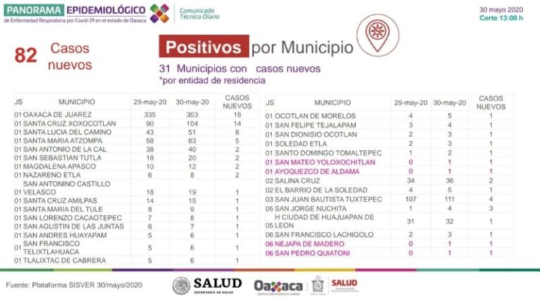 Los casos de contagios por Covid-19 van en aumento al establecerse que cuatro municipios oaxaqueños han sido alcanzados por la pandemia al registrar un enfermo …
