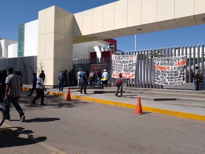 El día de hoy se registro una doble protesta en el Congreso del Estado; por una parte, pobladores de San Antonio Tepetlapa, Jamiltepec, exigen la instalación de un consejo municipal; en tanto, los pobladores de San Martín Peras solicitan una auditoria y la renuncia de su edil Román Juárez Cruz ante un presunto desvío de recursos.