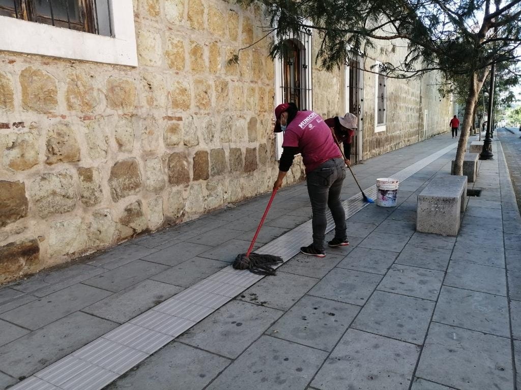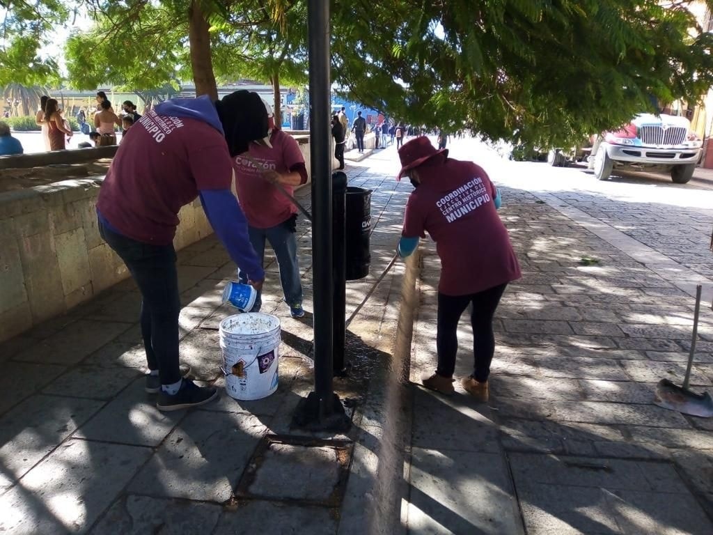 El día de hoy, cuadrillas de la Coordinación Ejecutiva del Centro Histórico, elementos del Heroíco Cuerpo de Bomberos de Oaxaca y comerciantes realizaron labores de limpieza en calles del Centro Histórico de la capital oaxaqueña.