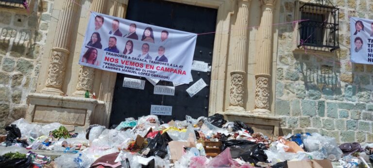 Locatarios de los mercados 2o de Noviembre y Benito Juárez arrojan su basura en la puerta del municipio
