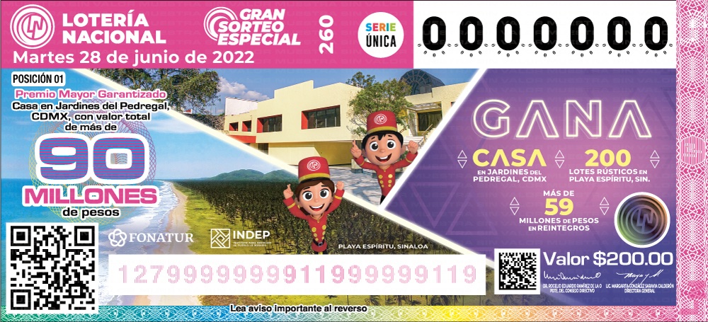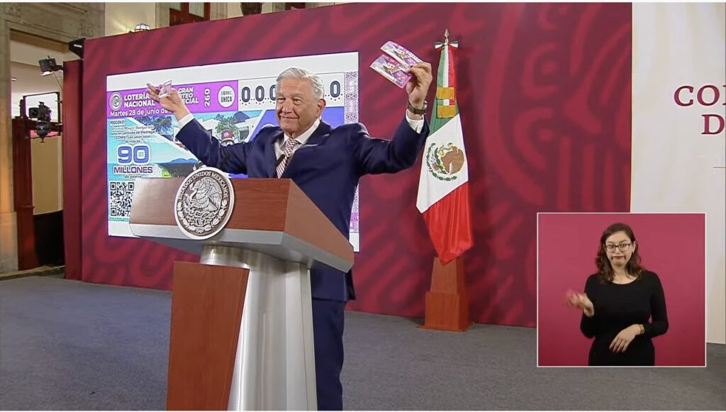 Durante la conferencia matutina de hoy, el presidente López Obrador invitó a la ciudadanía a participar en el sorteo de la Lotería Nacional del 28 de junio, donde se rifará una casa con valor de 90mdp y 200 lotes en Playa Espíritu, Sinaloa.