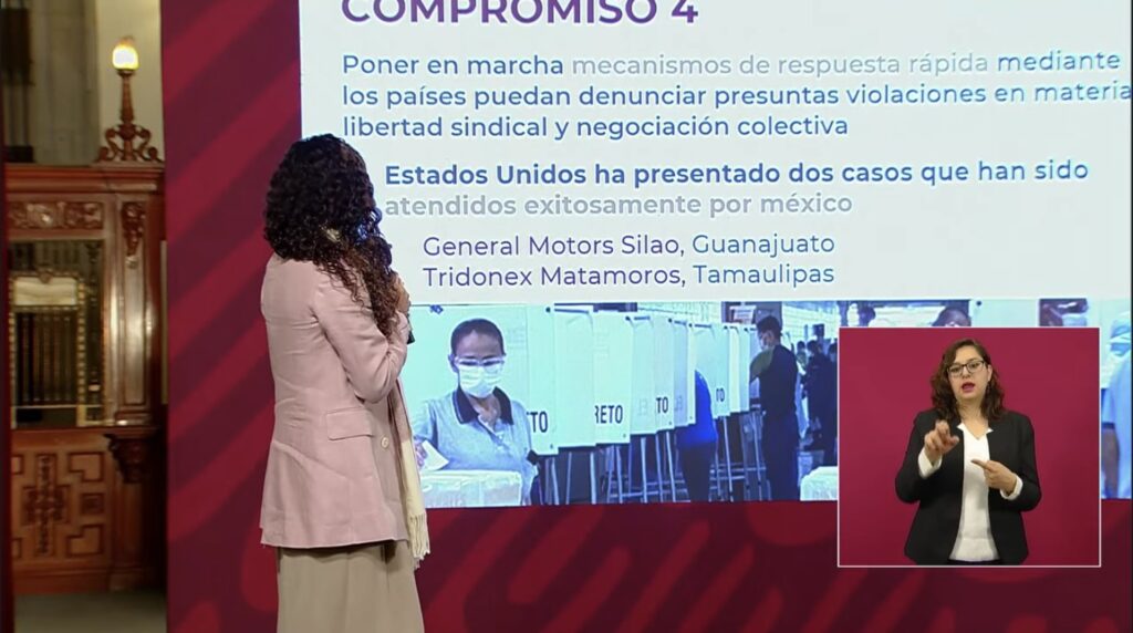 De igual manera, la joven secretaria comentó sobre el avance de México respecto a los compromisos asumidos en materia laboral en el T-Mec: