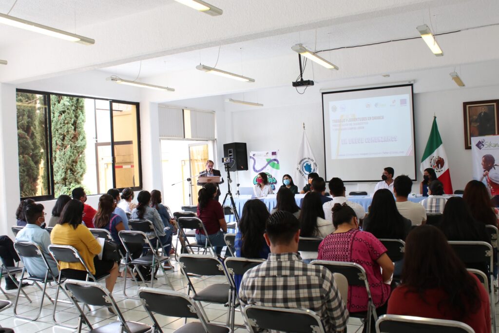 Agregó que el objetivo del diplomado es fortalecer las capacidades de la sociedad civil en Oaxaca y San Luis Potosí para fomentar y generar acciones de inclusión social y laboral en condiciones dignas de las personas jóvenes, particularmente mujeres, y contribuir en la creación de políticas públicas a favor de las personas jóvenes.