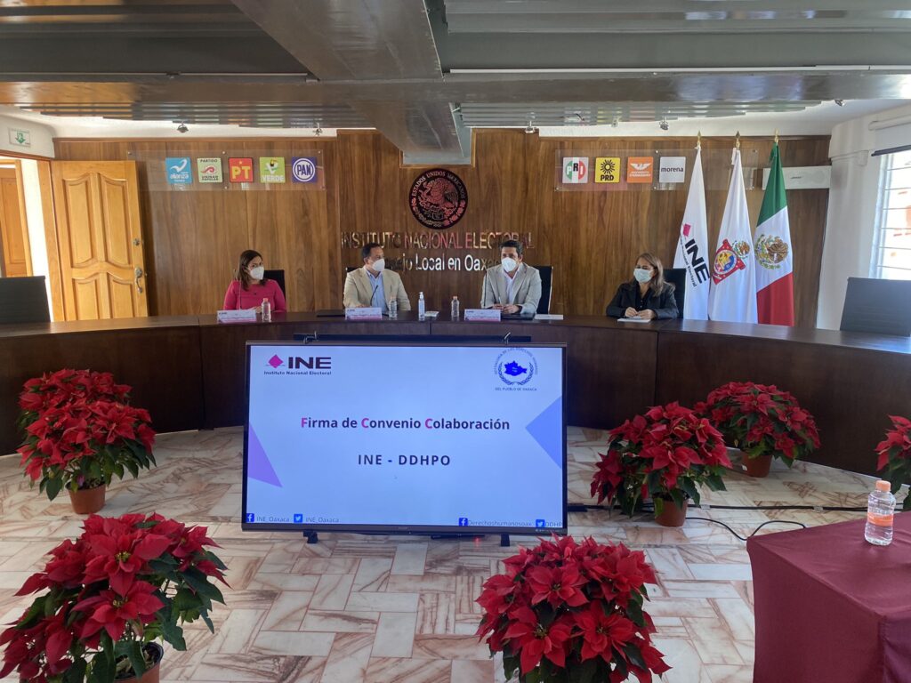 Este día martes, el Defensor de los Derechos Humanos del Pueblo de Oaxaca, Bernardo Rodríguez Alamilla y el presidente de la Junta Local Ejecutiva del Instituto Nacional Electoral en Oaxaca, Édgar Arias Alba, firmaron un convenio de colaboración para fortalecer la construcción de una ciudadanía integral, de cara a las elecciones del próximo año.