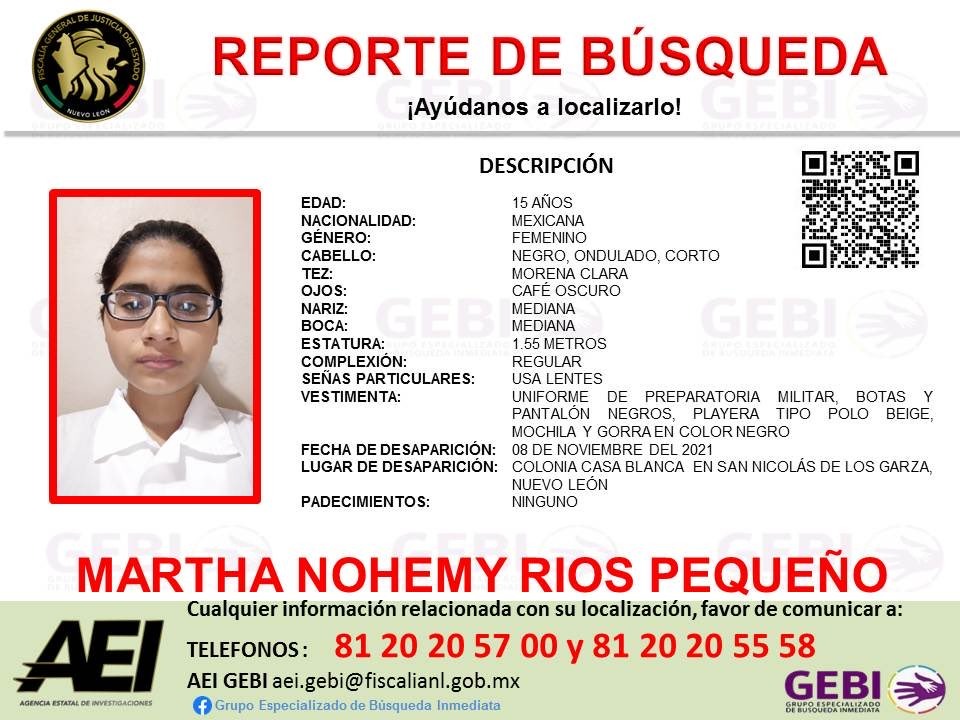 La adolescente había sido vista por última vez el 8 de noviembre de 2021, en San Nicolás de los Garza, en el estado de Nuevo León, fecha desde la cual se desconocía su paradero.