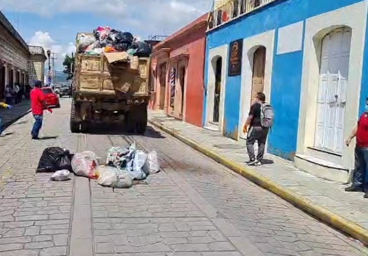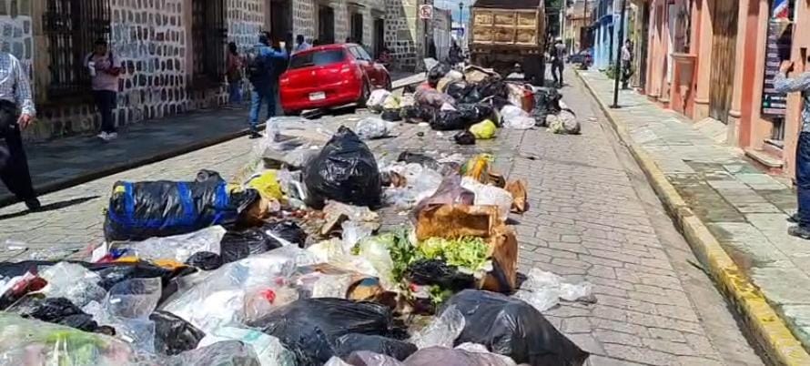 Debido al abandono en los servicios municipales, locatarios de los mercados 20 de Noviembre y Benito Juárez se trasladaron a las puertas del Municipio de Oaxaca de Juárez, donde depositaron la basura que se ha acumulado en los últimos días. Los locatarios se muestran inconformes ante la administración municipal.