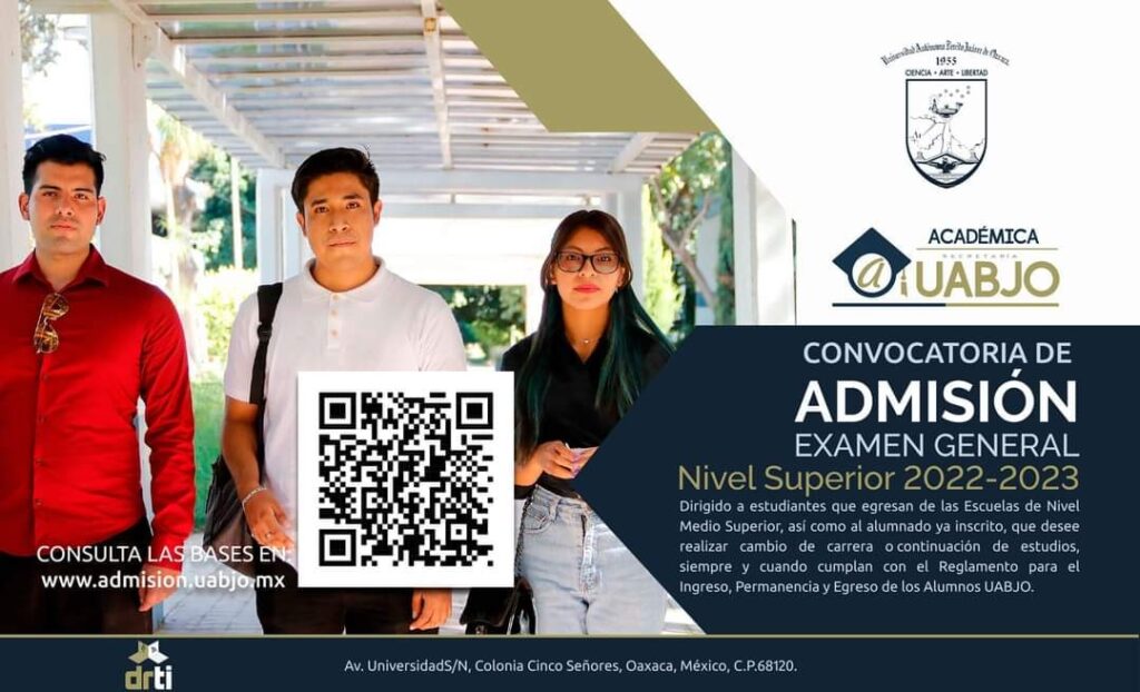 La Universidad Autónoma “Benito Juárez” de Oaxaca (UABJO), emitió su convocatoria de admisión al Nivel Superior para el ciclo escolar 2022-2023 a través de la página institucional www.admision.uabjo.mx.