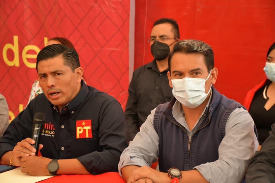 En rueda de prensa, el representante del PT, Lenin López Nelio, anunció la colación que integrará su partido con Morena, Nueva Alianza y el PVEM en busca de de la gubernatura del estado el próximo año.