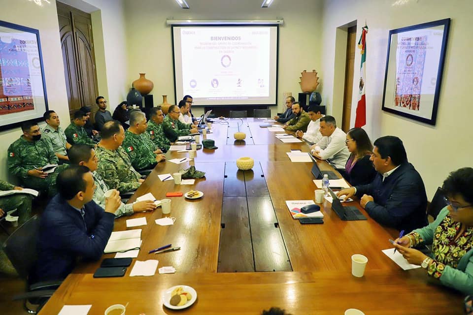 A 6 días del cambio de gobierno, hoy el gobernador electo, Salomón Jara, junto a parte de su próximo gabinete participaron en la mesa de seguridad que encabezó el gobernador constitucional, Alejandro Murat. La reunión tuvo lugar en Palacio de Gobierno y se revisó la agenda de seguridad pública.
