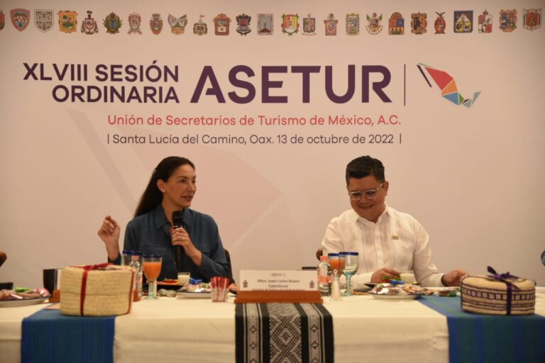 En el marco del Tianguis De Pueblos Mágicos 2022, el cual se realiza en el Centro Cultural y de Convenciones de del Estado de Oaxaca, se llevó a cabo la XLVIII Sesión Ordinaria de la Asamblea General de la Unión de Secretarios de Turismo de México, en la que se renovó la Mesa Directiva para el ciclo 2022 – 2023, al dar por concluída la gestión de Juan Carlos Rivera Castellanos, secretario de Turismo del Estado de Oaxaca, quien estuvo a cargo de la presidencia por dos periodos consecutivos a petición de las y los integrantes de la asociación.