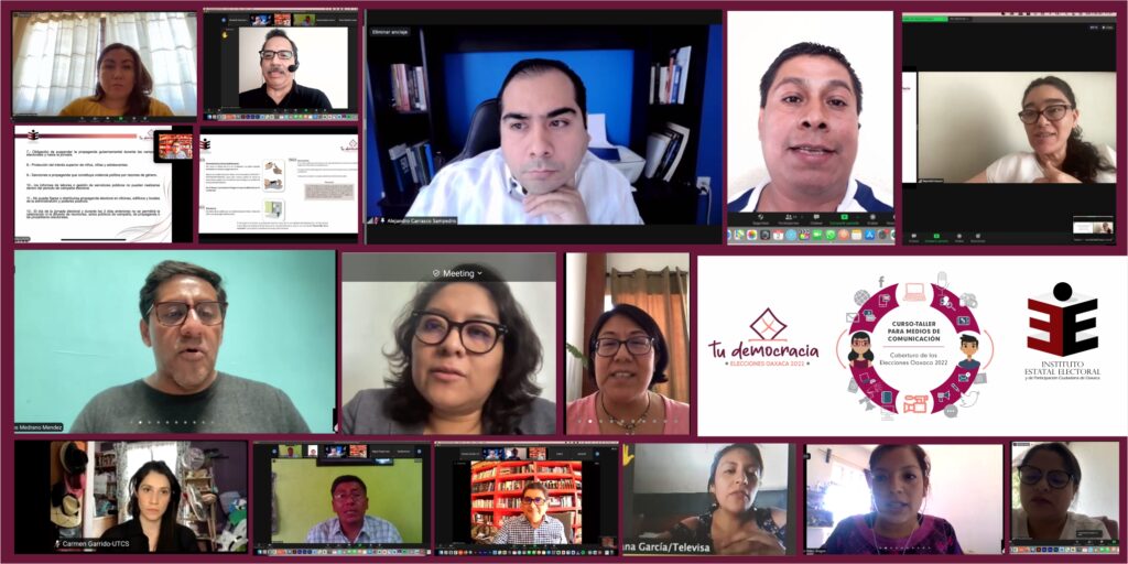 Con la asistencia virtual de más de 40 representantes de medios impresos, radio y televisión del estado de Oaxaca, este fin de semana concluyó el taller denominado “Cobertura de las Elecciones Oaxaca 2022” organizado por la Comisión Temporal de Comunicación del Instituto Estatal Electoral y de Participación Ciudadana de Oaxaca (IEEPCO).