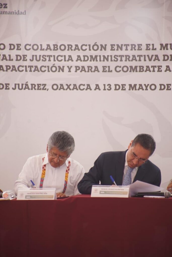 Oaxaca de Juárez; Oax. 13 de Mayo de 2022.- Con el fin de llevar a cabo proyectos, estrategias y acciones conjuntas para la difusión de la cultura de la integridad, legalidad y apoyo en materia de combate a la corrupción, priorizando en la capacitación de las personas servidoras públicas, este viernes el Tribunal de Justicia Administrativa del Estado de Oaxaca, firmó un convenio de colaboración con el Municipio de Oaxaca de Juárez.